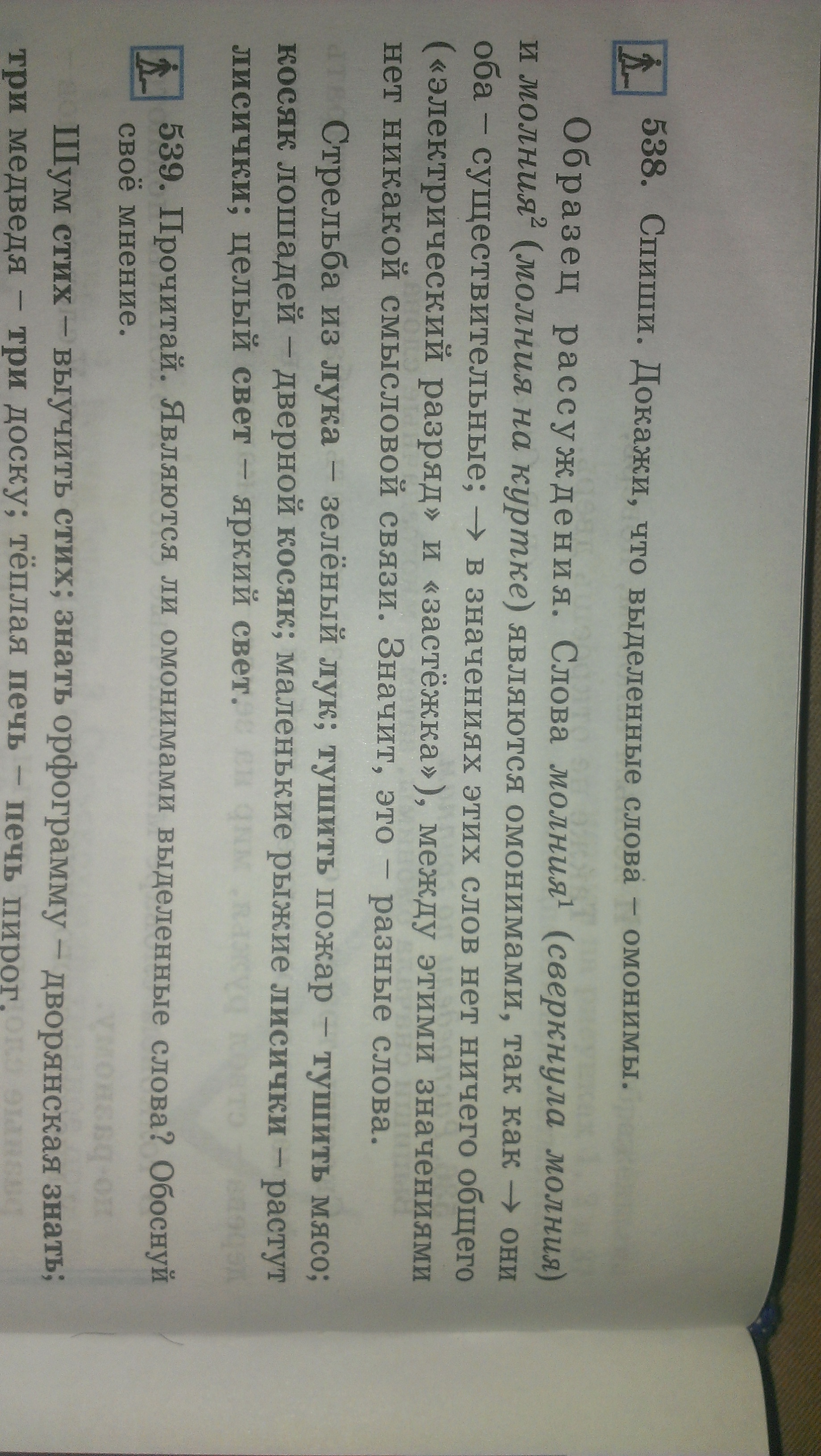 Вы про омонимы? Так ведь там образец. Так и объяснить, что например слово тушить (пожар или мясо) - это омоним т.к оба существительные, пишутся одинаково, но значение этих слов разное.