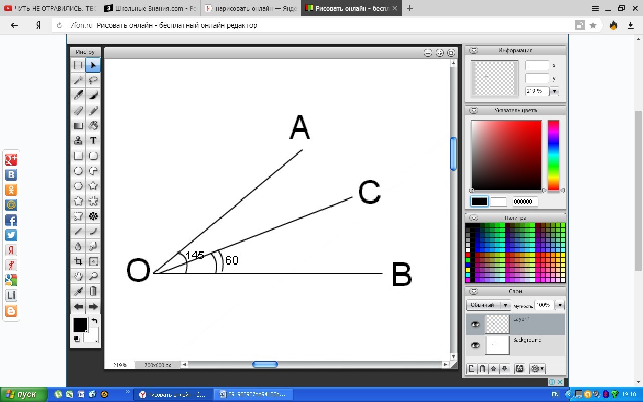 1.Постройте угол АОВ в 145°.Нарисуйте такой луч ОС чтобы угол ВОС =60°.Найдите значение угла АОС.