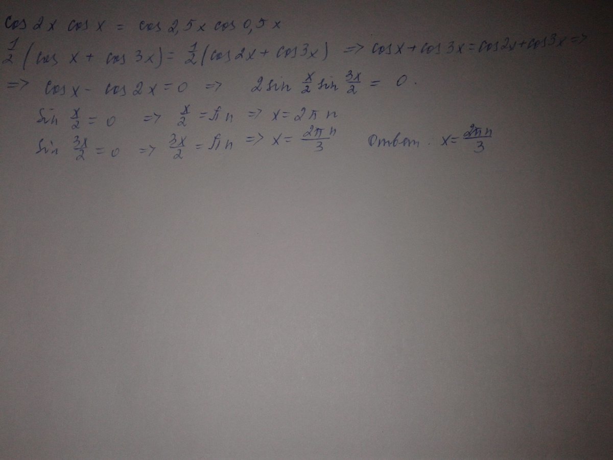 cos2x×cosx=cos2,5×cos0,5x решите
