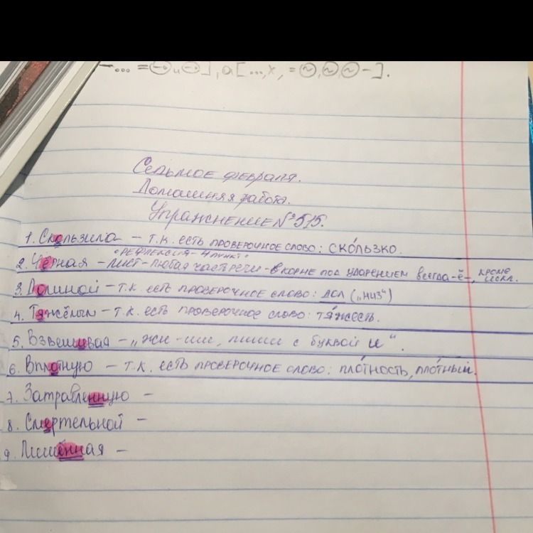 Крч,нужно объяснить почему я вставила именно эти буквы в слова(7,8,9):