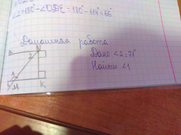 если угол 1=71°, то МНК = 90-71=19 даллее