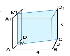 В прямоугольном параллелепипеде АD = 3, DС = 4, СС1 = k. Через ребро С1С и