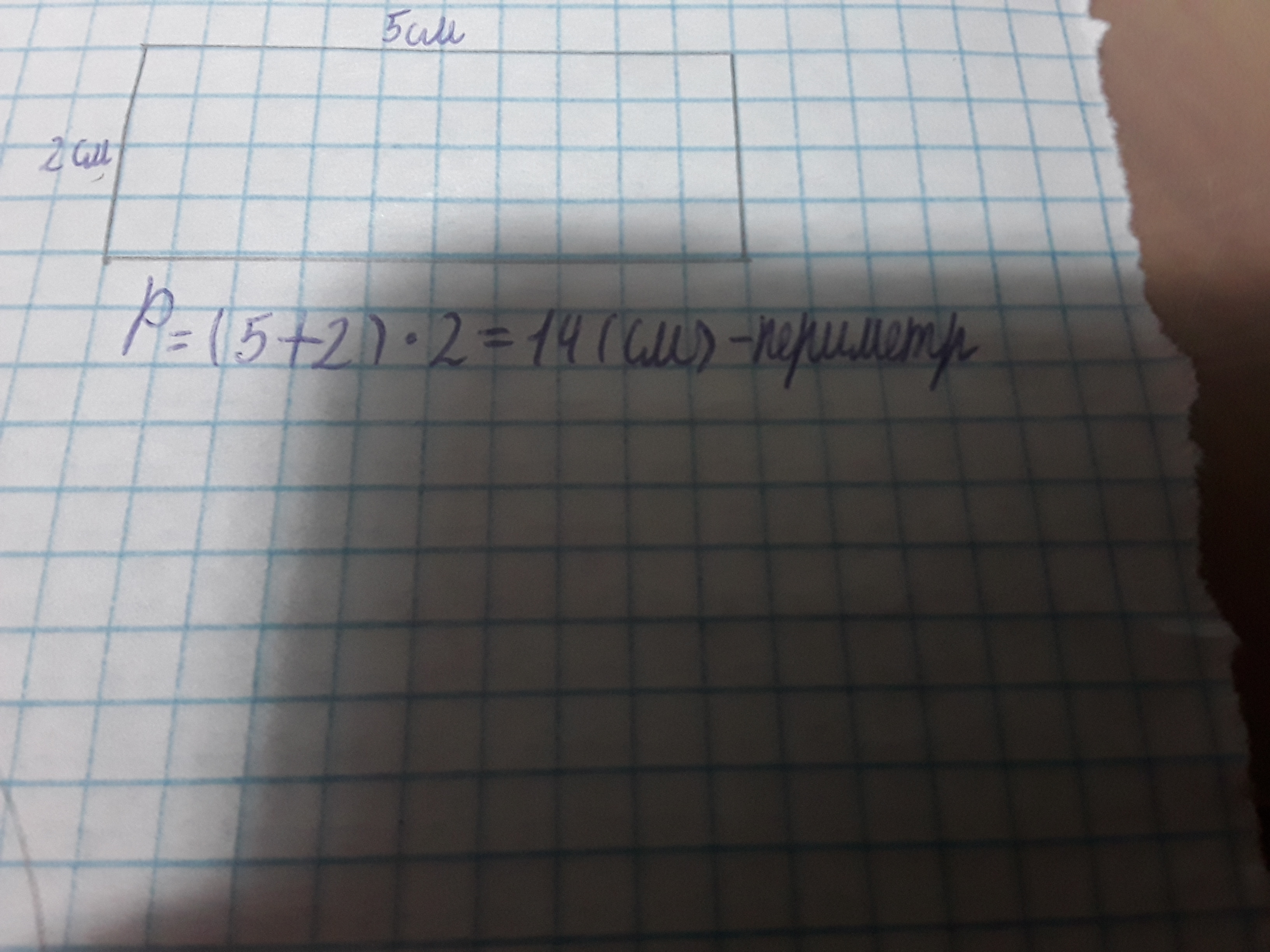 Стороны прямоугольника: длина 2 см, ширина 5 см.