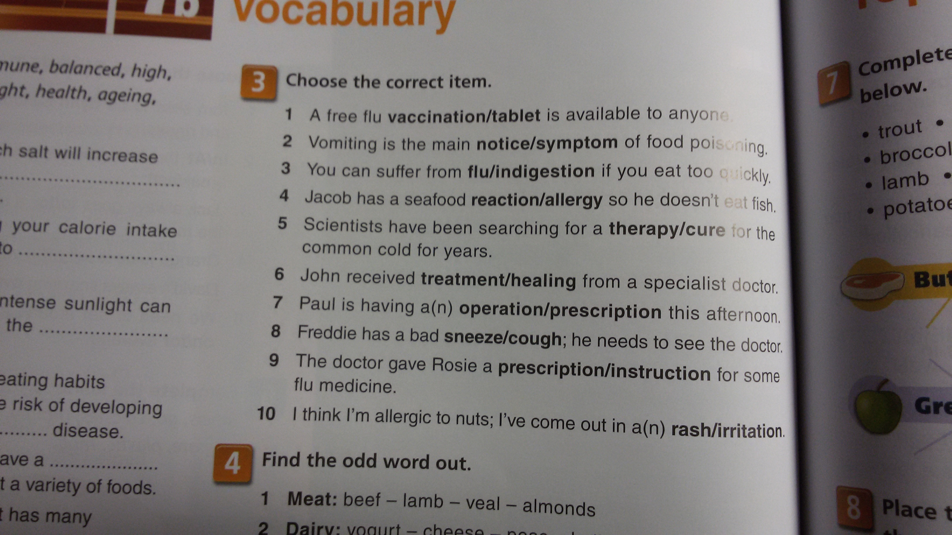 2) symptom 7) operation 8)cough 9) prescription 10) rash