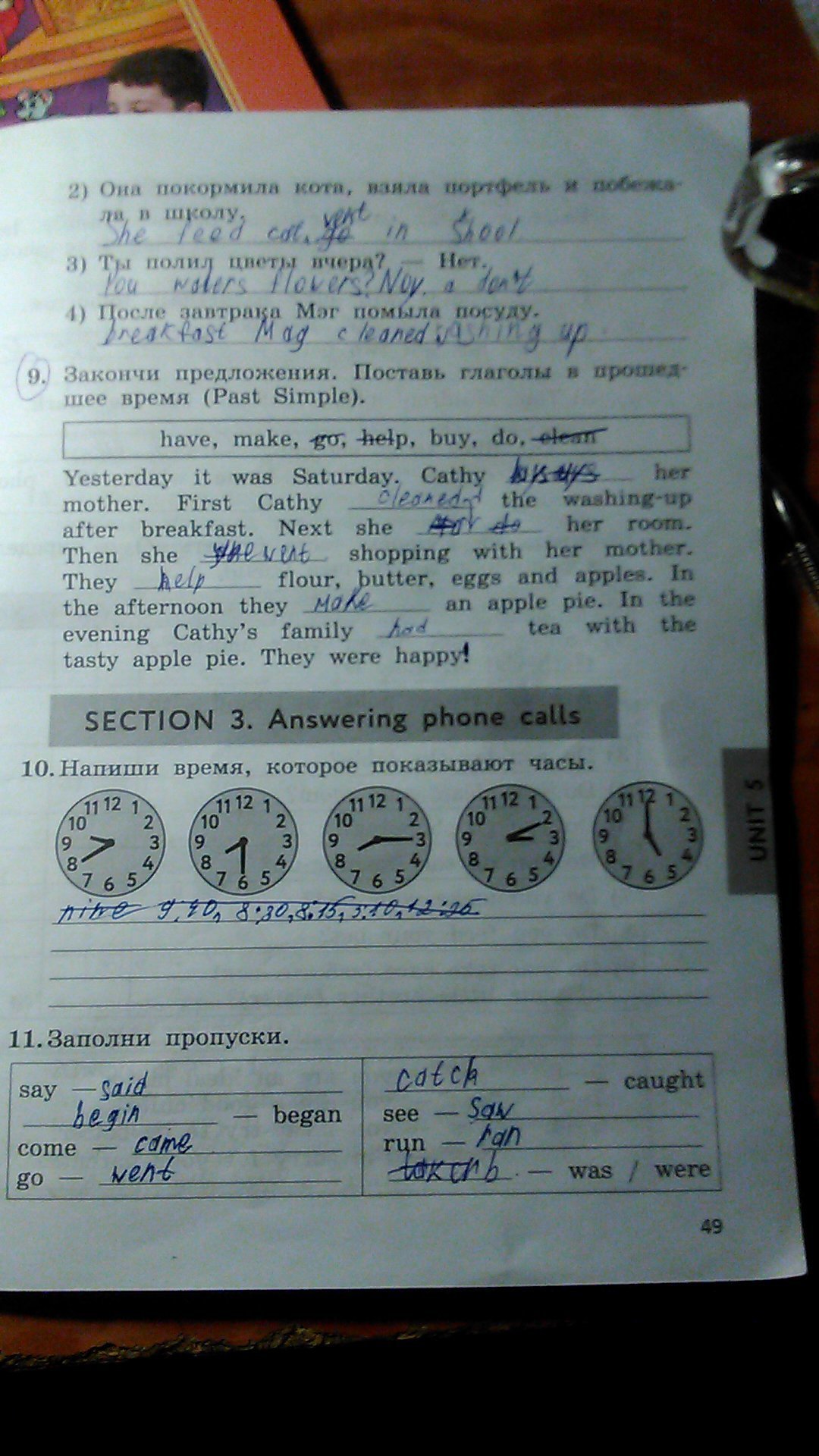 Девять часов сорок минут, восемь часов тридцать минут, восемь часов пятнадцать минут, три часа десять минут, пят часов.