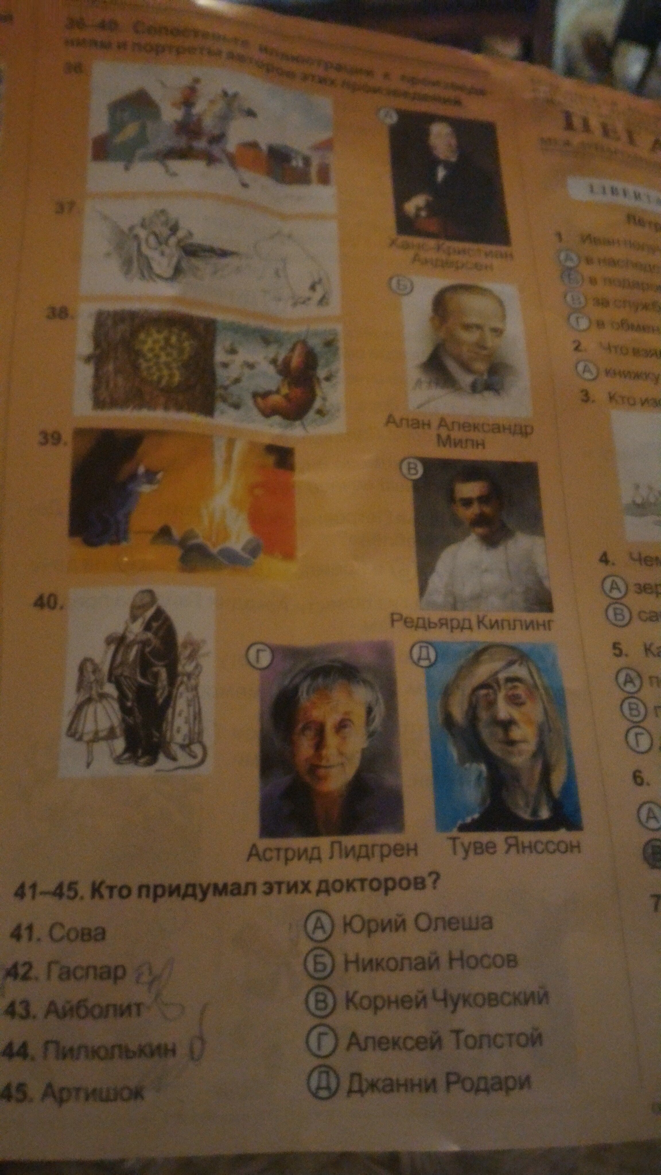 Первое сопоставь иллюстрации к произведениям и портреты авторов этих произведений