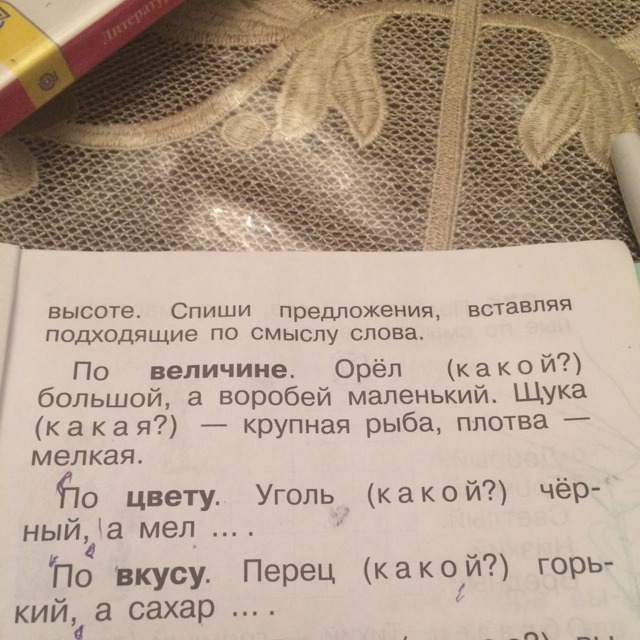Сравни предметы по одному по величине цвету вкусу или высоте Спиши предложение вставляя подходящие по смыслу слова
