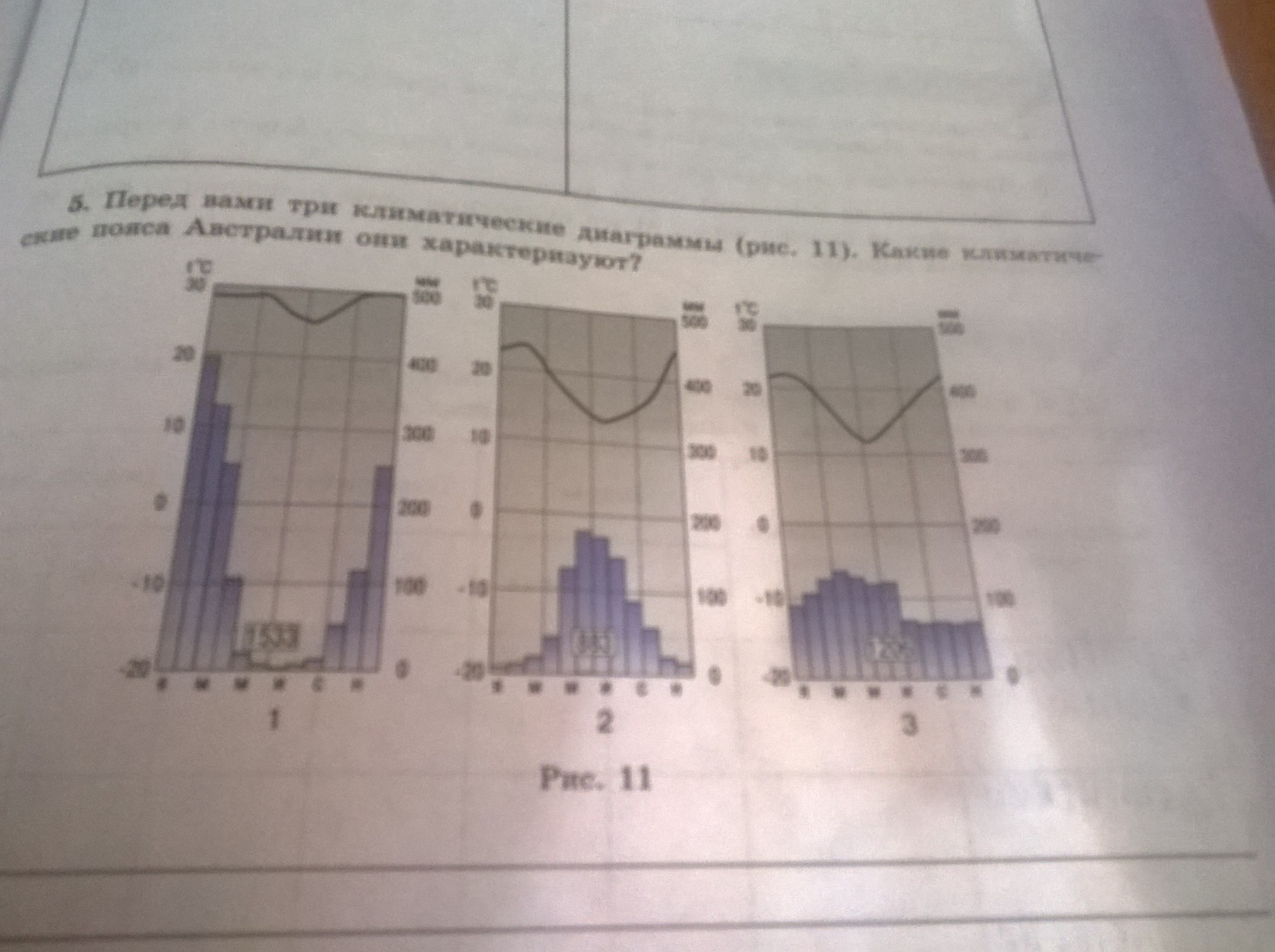 Перед вами три климатические диаграммы. Какие климатические пояса Австралии они характеризуют.