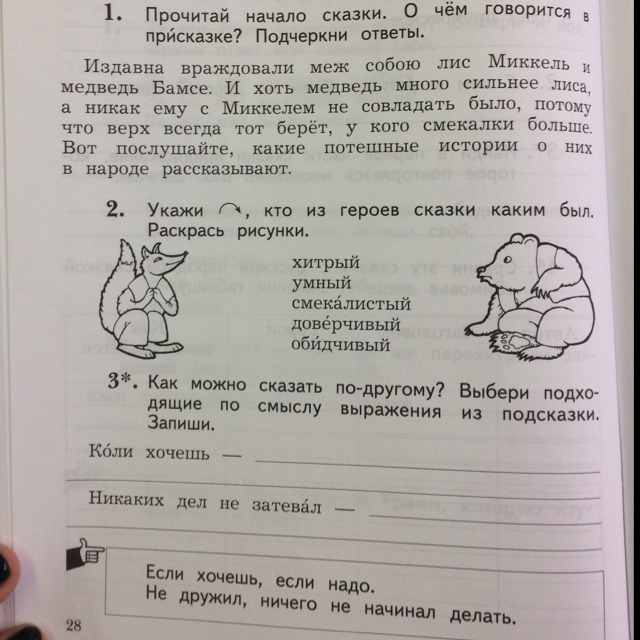 1- рассказывается о том, что два животных спорили,но один другого взять не мог силой, потому что тот был со смекалкой