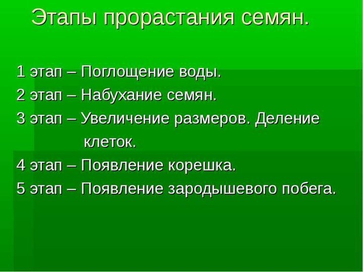 а также для прорастания семян необходимы: вода, воздух, свет и тепло. а для дальнейшего развития: почва, вода, воздух, свет и тепло