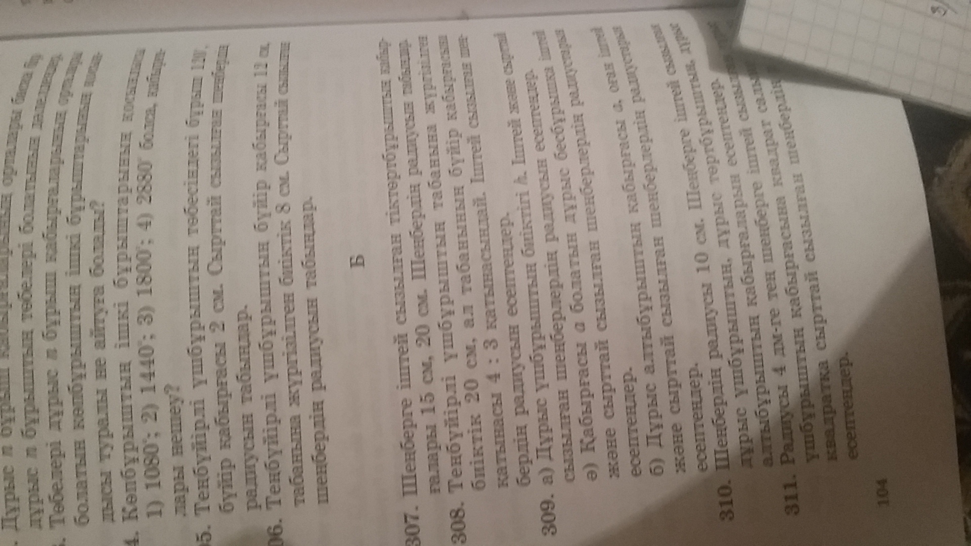 теңбүйірлі үшбұрыштың бүйір қабырғасы 12 см табанында жүргізілген биіктік 8 см Сырттай сызылған шеңбердің радиусы тап 306 и 307 пж)