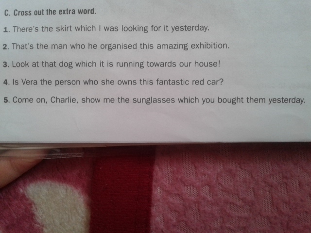 5.)Come on, Charlie, show me that sunglasses which you bought them yesterday.