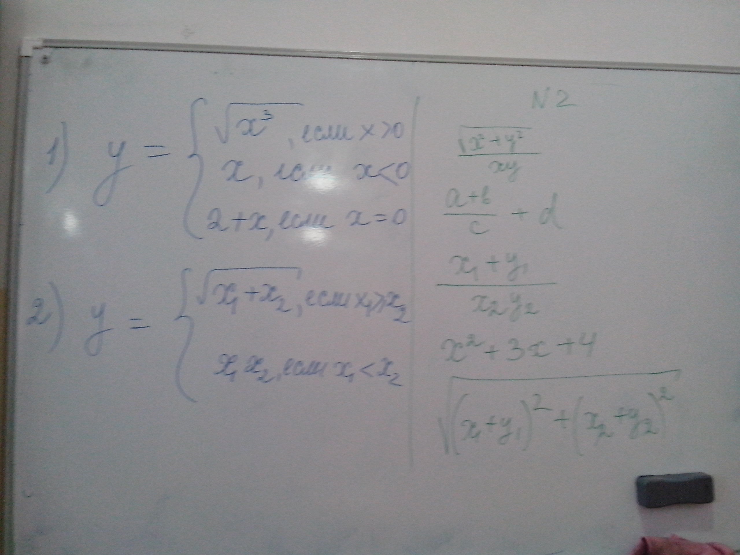 Программы в приложении. Код Второго задания (справа на доске) сделал в одной программе с выбором номера задания. Объем получился большой, но для примера в самый раз.
