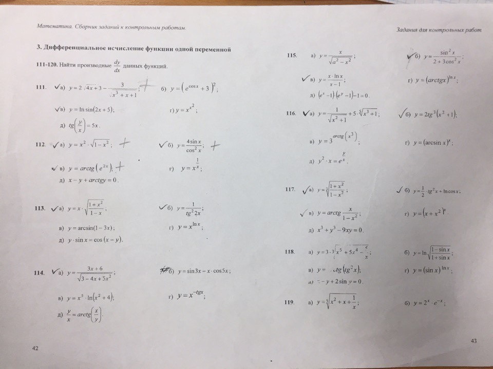 Помогите пожалуйста решить дифферинциальные исчисления функции одной переменной(решения подробные расписанные нужны, №112(а), 113(г), 117(в)) срочнооо нужны подробные решения помогите.