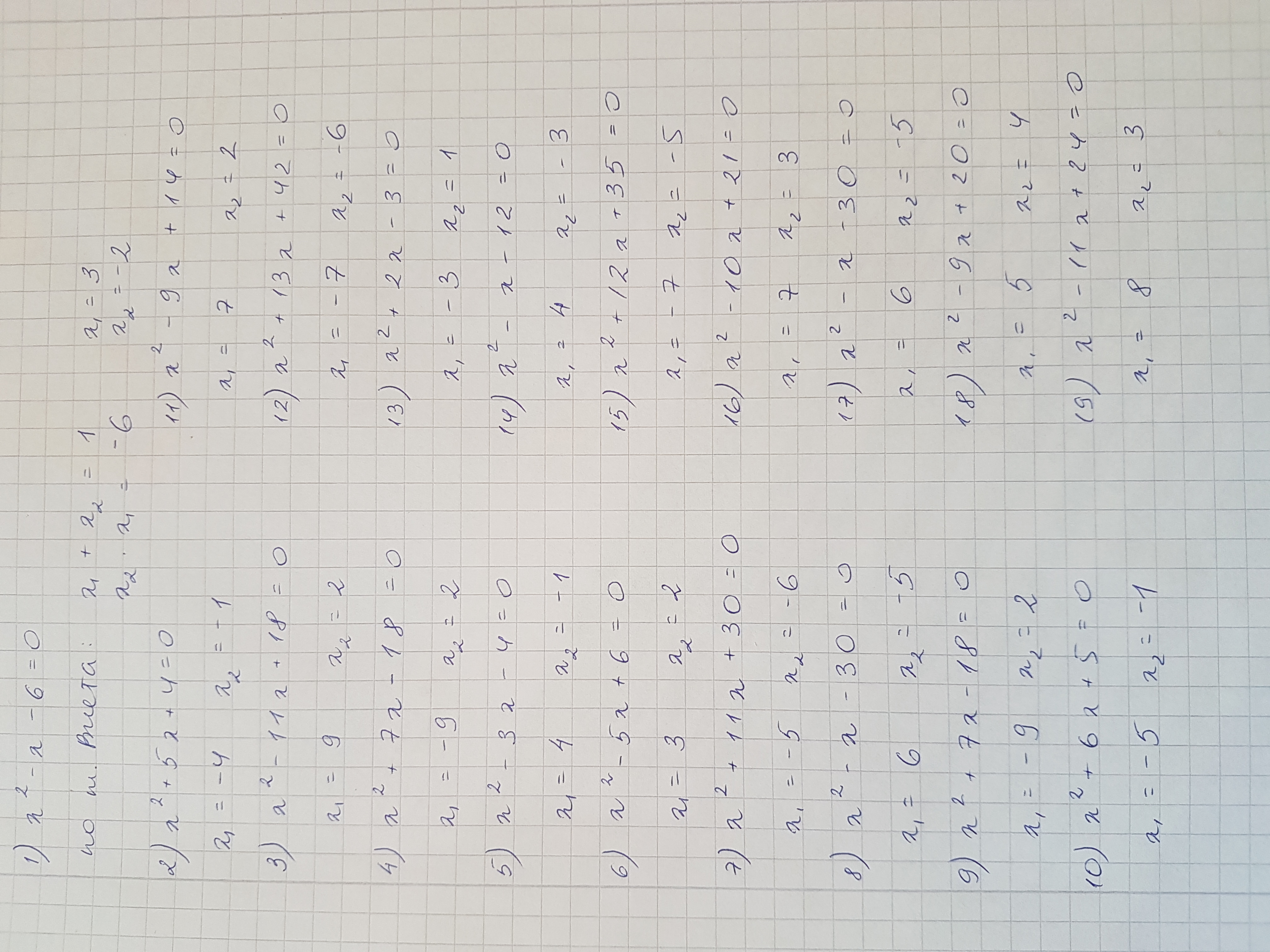 9) х2 + 7х - 18 = 0