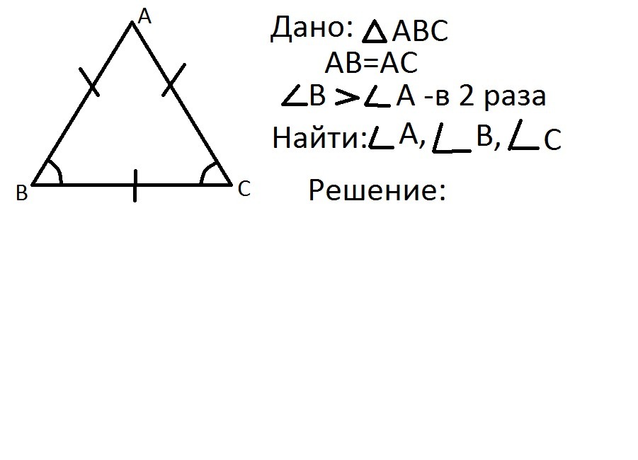 Сумма углов треугольника равна 180° = 2А+2А+ А = 5А.