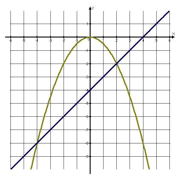 Графики пересекаются в точках (-4; -8) и (2; -2).