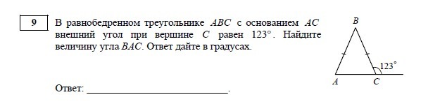 Да. Ети углы смежные. Угол АСх=угол ВСх+ угол ВАС => угол ВАС=угол АСх - угол ВСх = 180 - 123=57