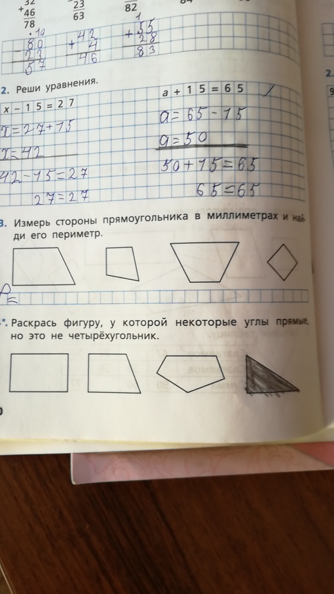 выбери один из этих прямоугольников, обозначь его( закрась например) возьми линейку и измерь каждую его сторону, затем все это сложи.вот и будет тебе периметр