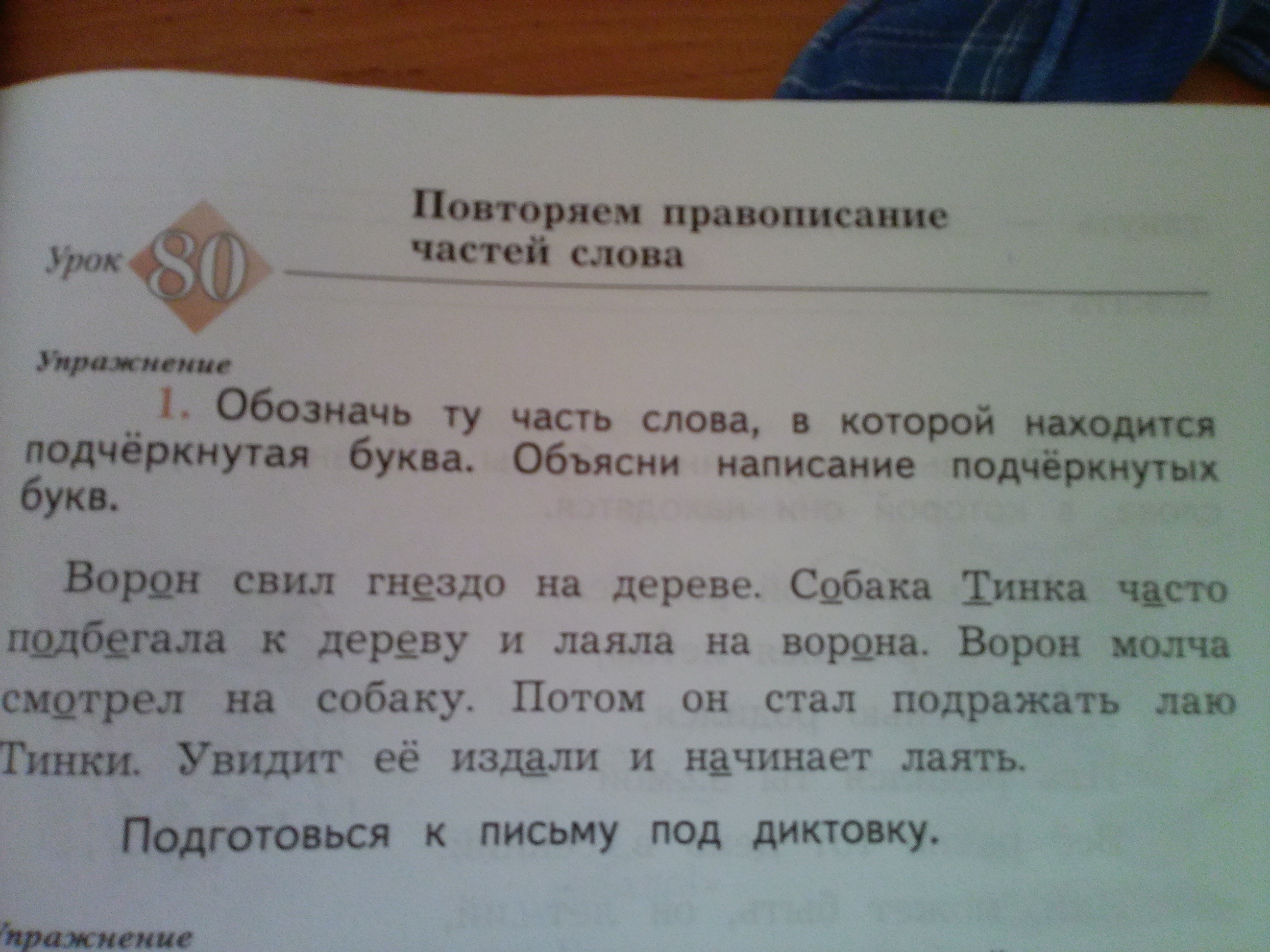 Ворон суффикс,гнездо корень,собака корень,Тинка корень,часто корень,подбегала 1приставка 2корень,дереву корень,ворона корень,смотрел корень,издали корень,начинает корень