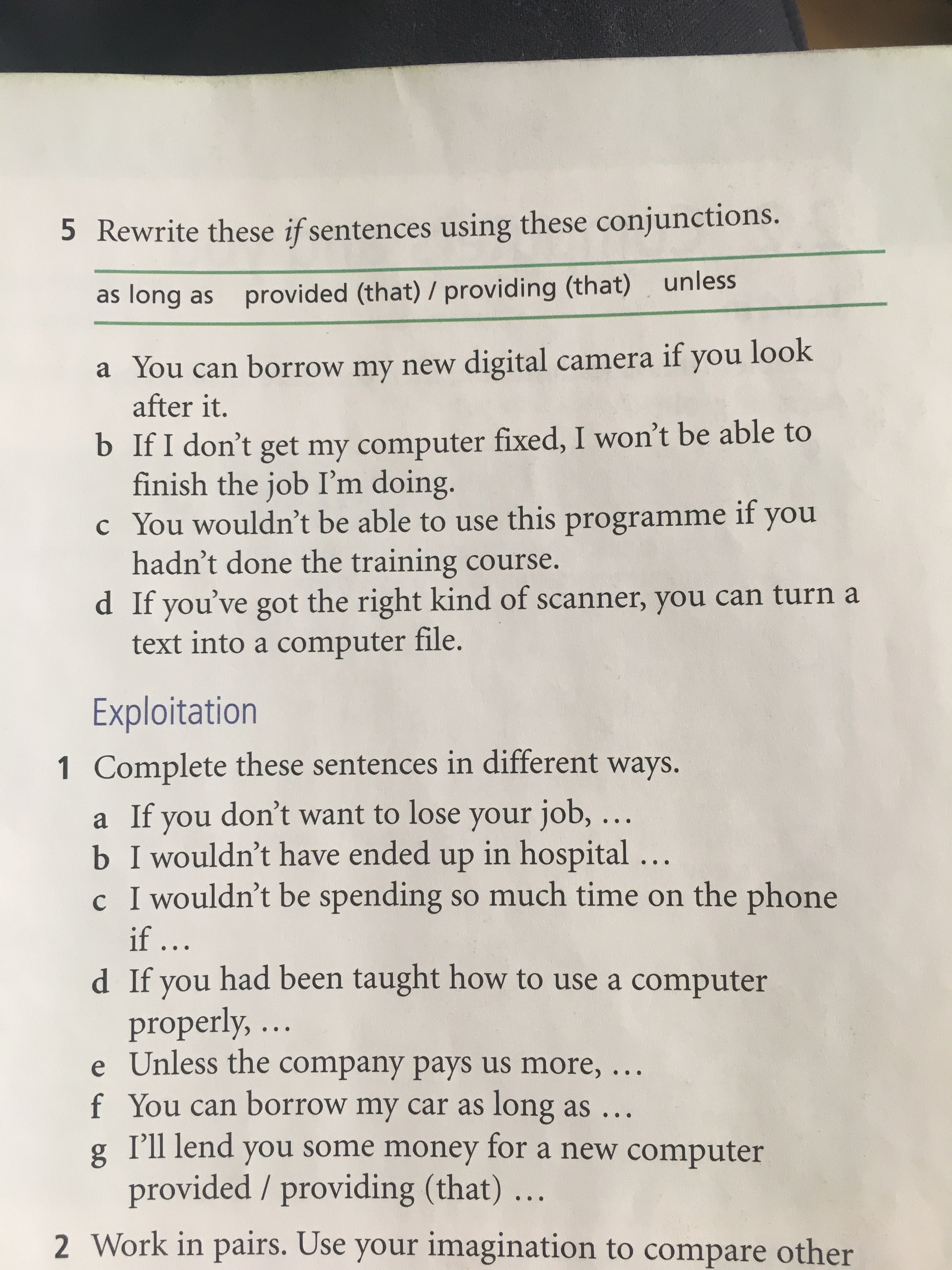 2. Unless I don't get my computer fixed, I won't be able to finish the job I'm doing.