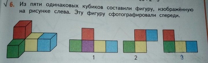из пяти одинаковых кубиков составили фигуру, изображенную на рисунке слева.эту фигуру сфотограировали спереди