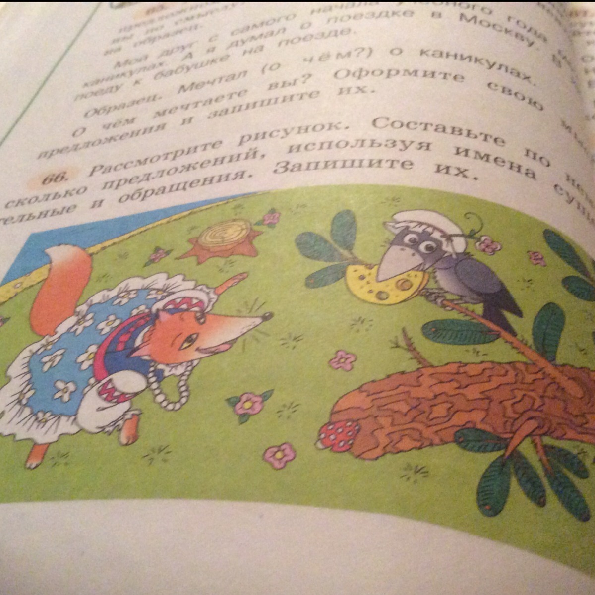 Рсссмотрите рисунок. Составь по нему несколько предложений, используя имена существительные и обращения. Запишите их.