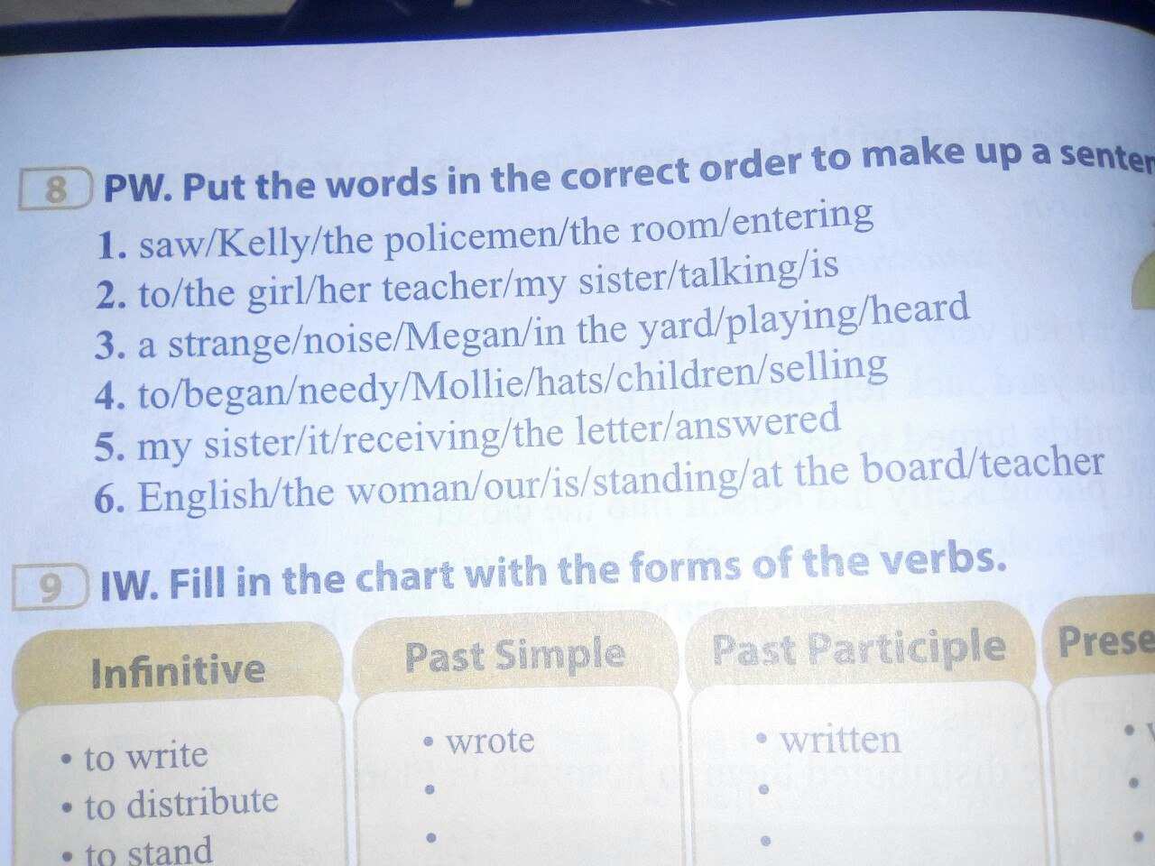 1. Kelly saw the policemen entering the room.