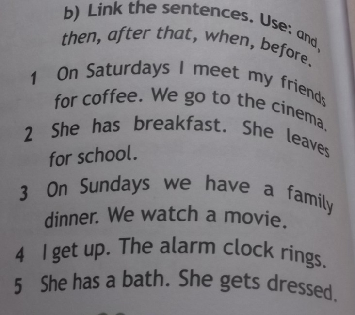 1. On Saturdays I meet my friends for coffee and we go to the cinema.
