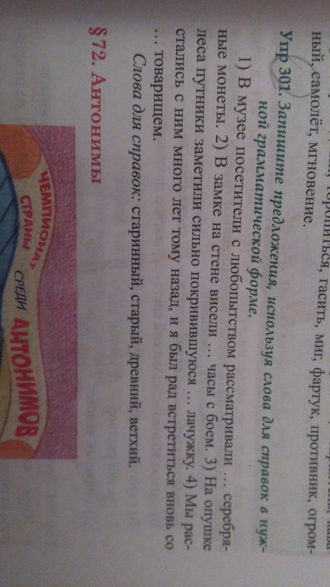 1)Древние.2) Старинные.3)Ветхую.4) Старым.