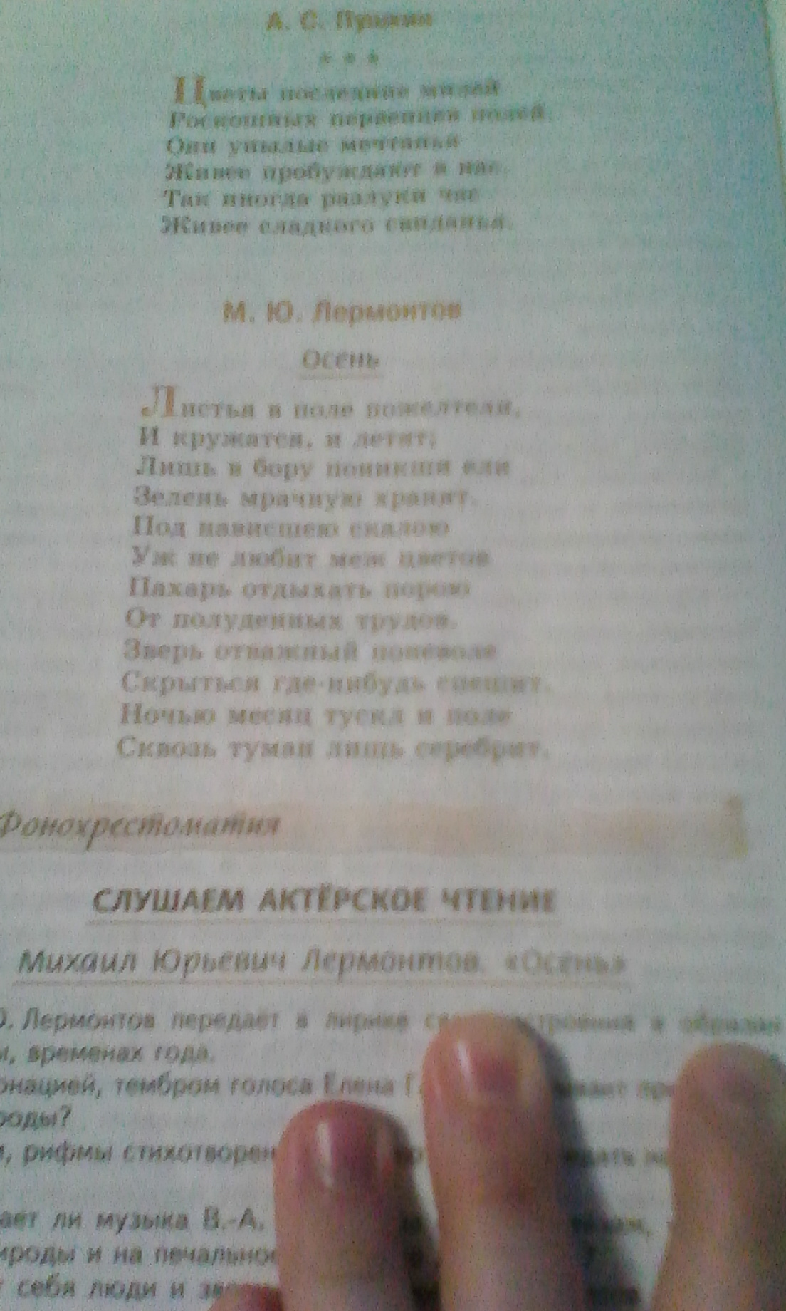 Композиционные особенностиПолноценный анализ стиха Лермонтова «Осень» затруднителен, так как это маленькое и неоконченное произведение. Если рассматривать текст «как есть», то можно уловить элементы кольцевого строения (первая и предпоследняя строки содержат слово поле, при этом в начале стихотворения изображается осенний день с опадающей листвой, в конце – ночной пейзаж в темных размытых тонах). Для композиции также характерна сквозная антитеза – это упомянутое уже противопоставление дня и ночи, а также сравнение наступившей осени и прошедшего лета (Уж не любит, меж цветов, / Пахарь отдыхать порою / От полуденных трудов), природных оттенков, света и тьмы (листья пожелтели – ели зелень мрачная).