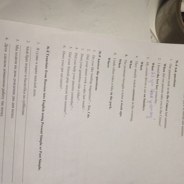 4. What do they usually watch in the evening? 5. When did the postman bring a letter? 6. Where does Linda often ride a bike?