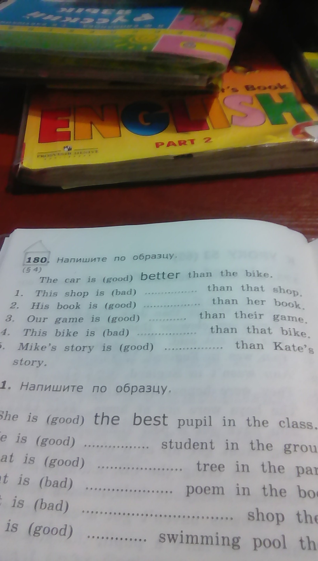 2.His book is better than her book.