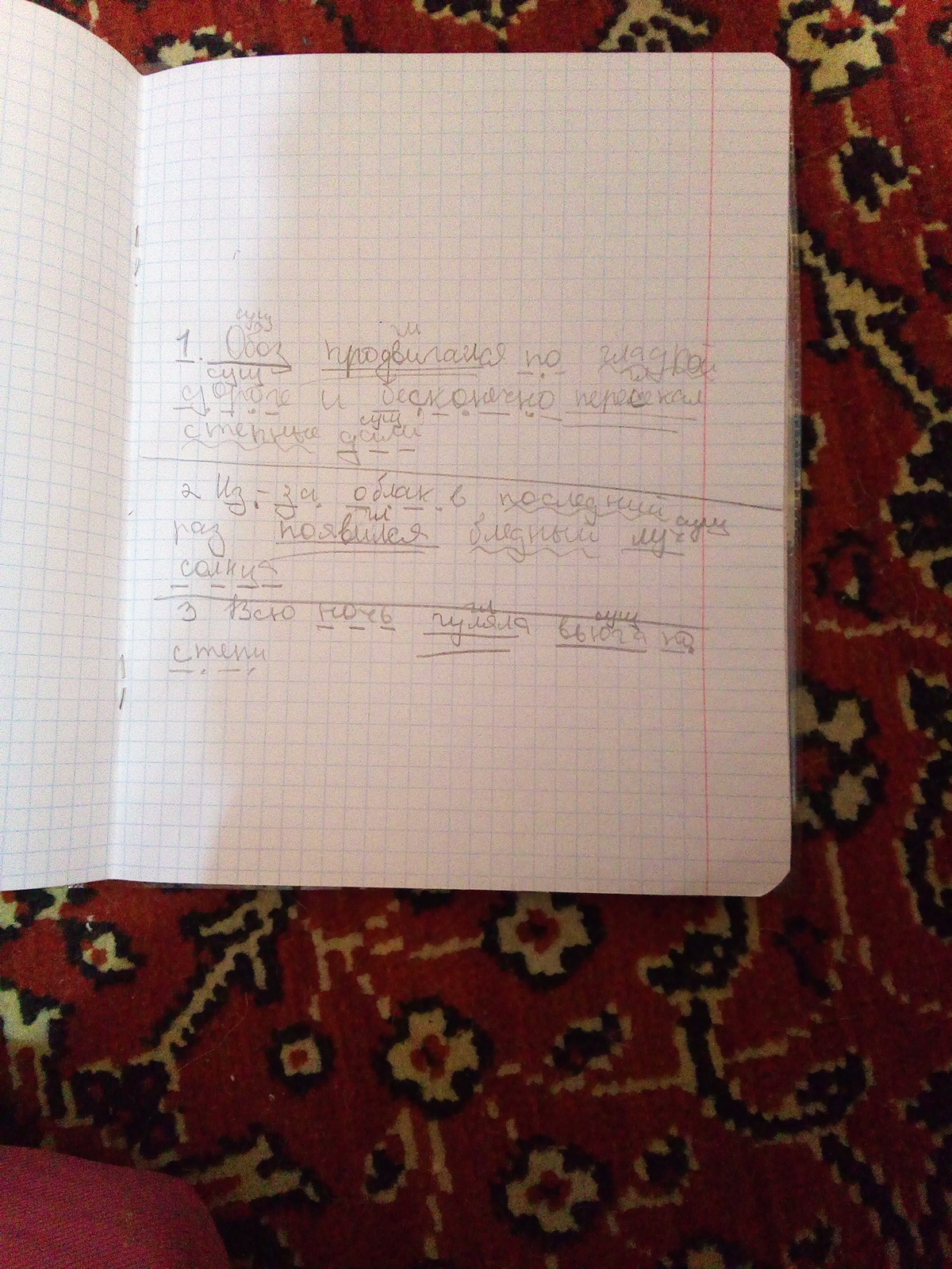 2:Из-за облак в последний раз появился бледный луч солнца.