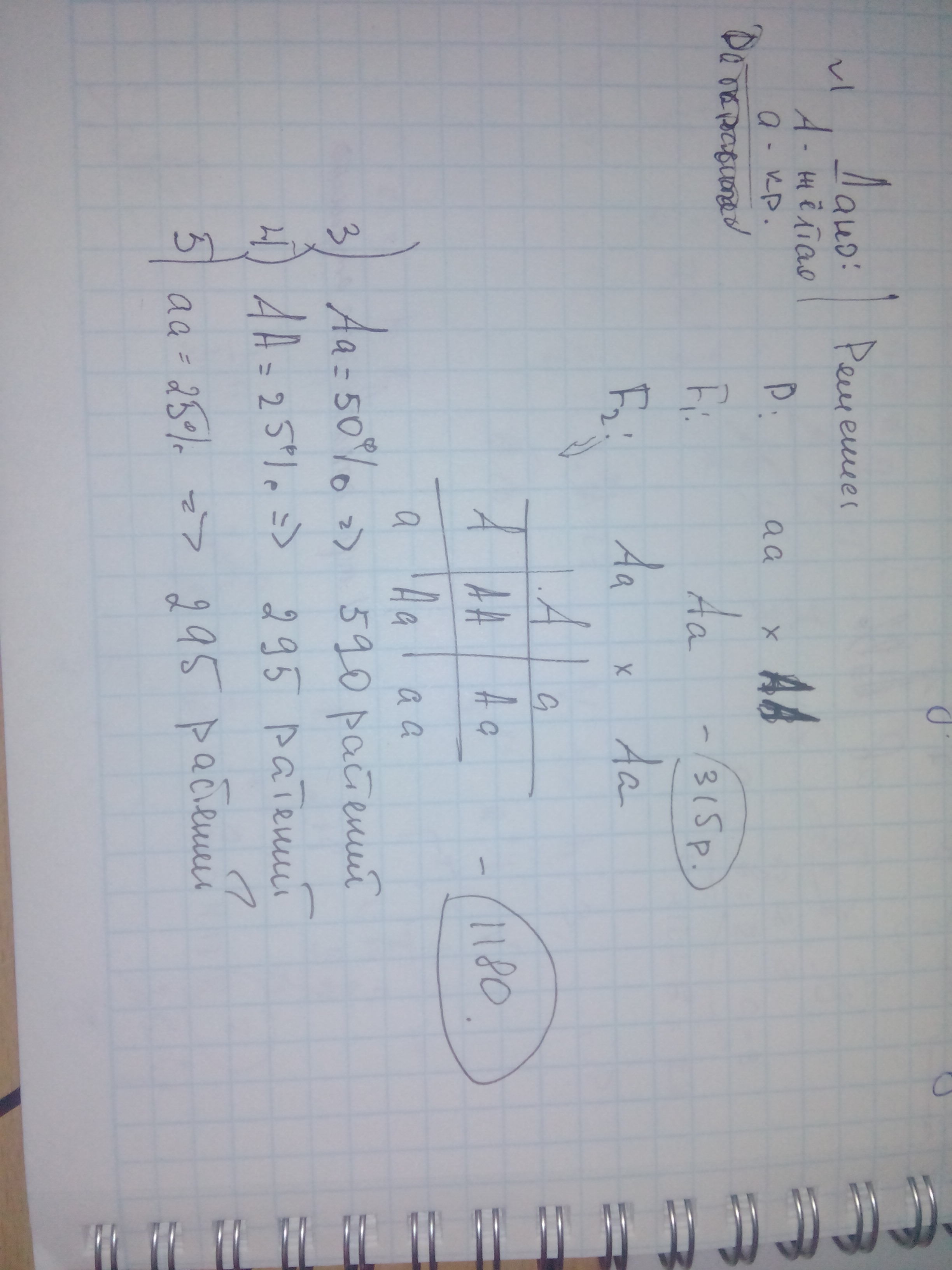 корнеплод.В F1 получили 315 растений, в F2 - 1180