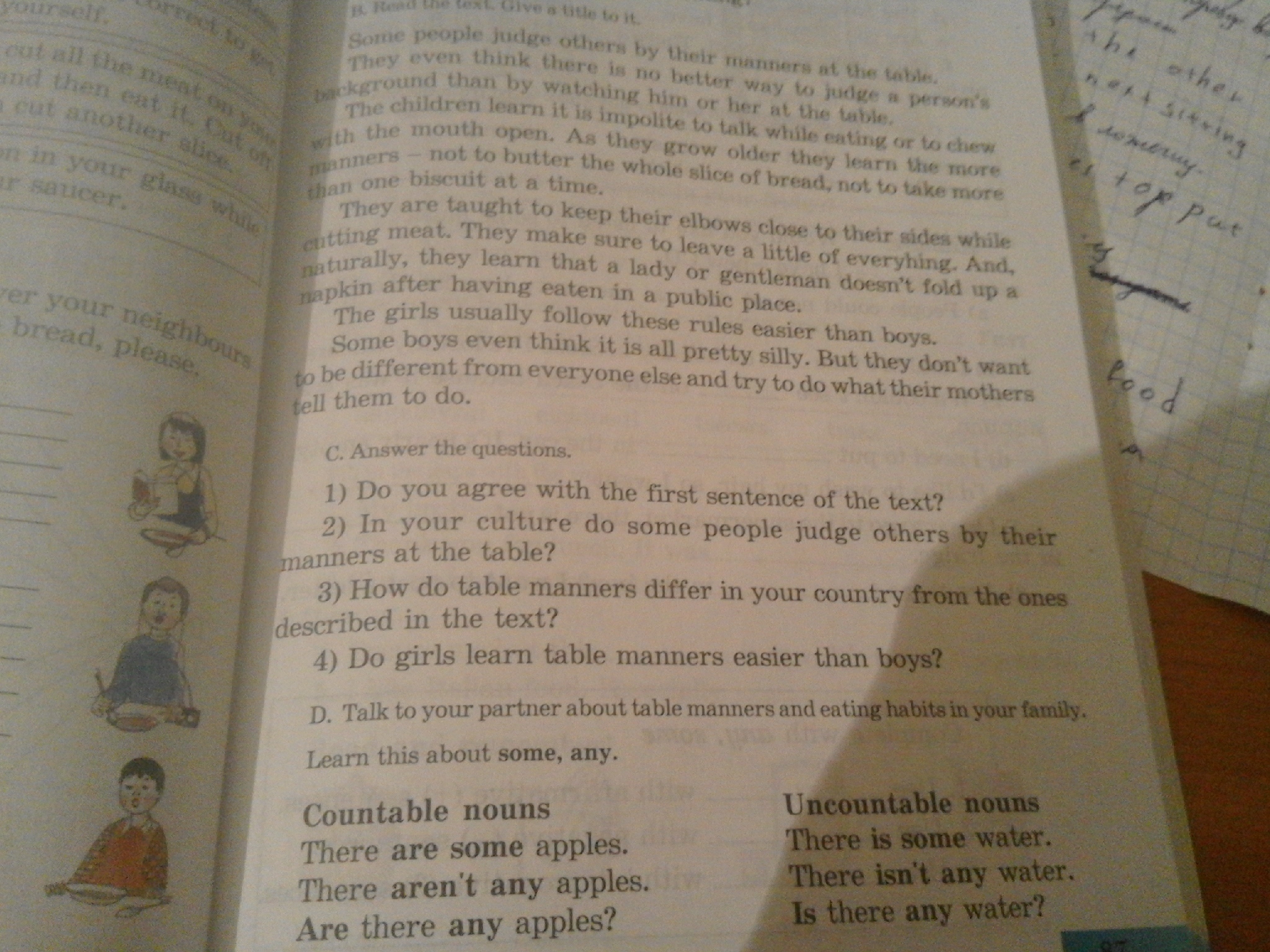 3) Как манеры за столом в твоей стране отличаются от тех, которые описаны в тексте?