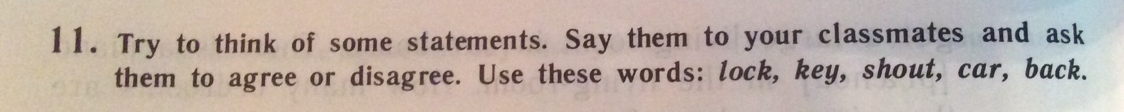Lock, key, shout, car, back.