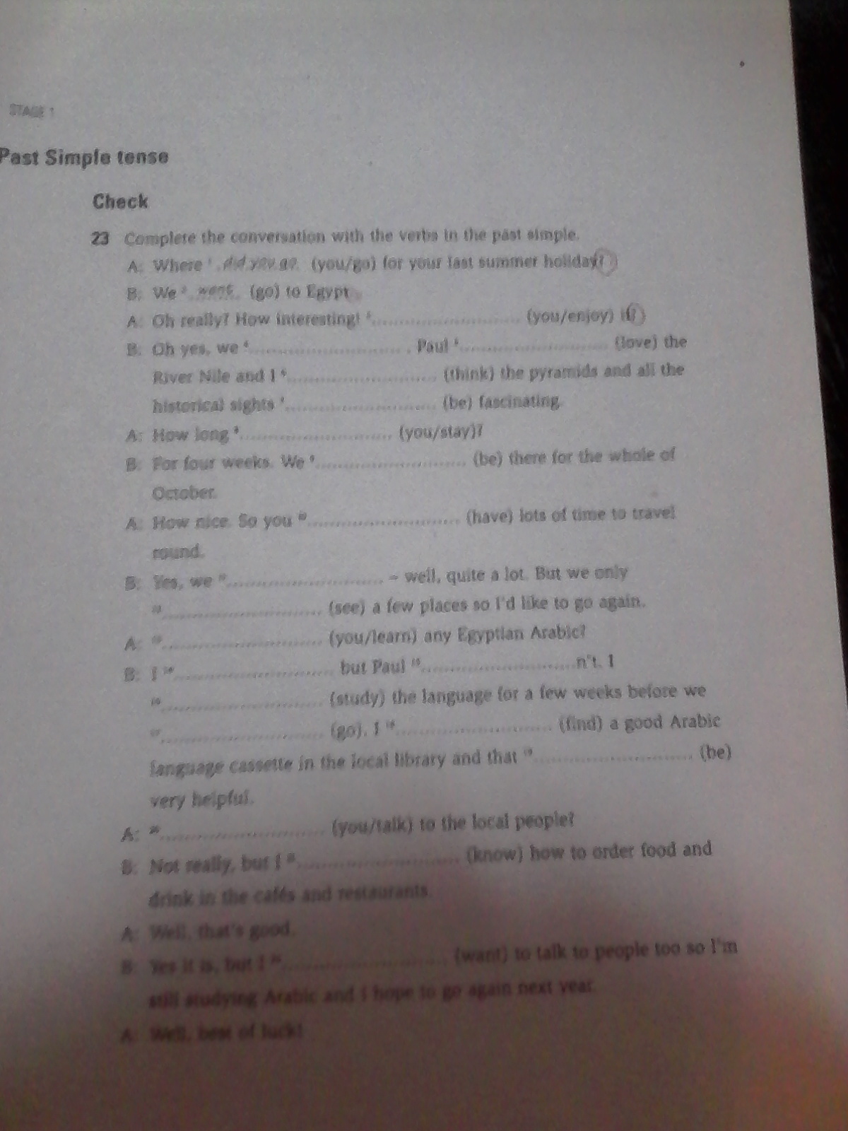 10. I studied the language a few weeks ago before we went. I found a good Arabic language cassette in the local library and that was very helpful.