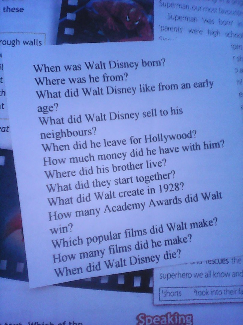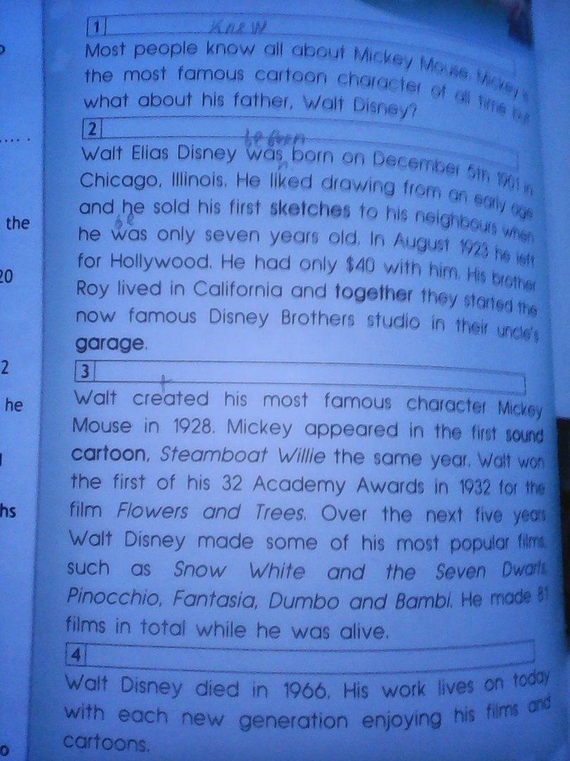 Walt Disney was born on December fifth, nineteen ou one. He was from Chicago, Illinois. He liked drawing from an early age. He sold his first scetches to his neighbours. He left for Hollywood in August, nineteen twenty three having only forty dollars with him. Walt's brother lived in California. They started their studio together.