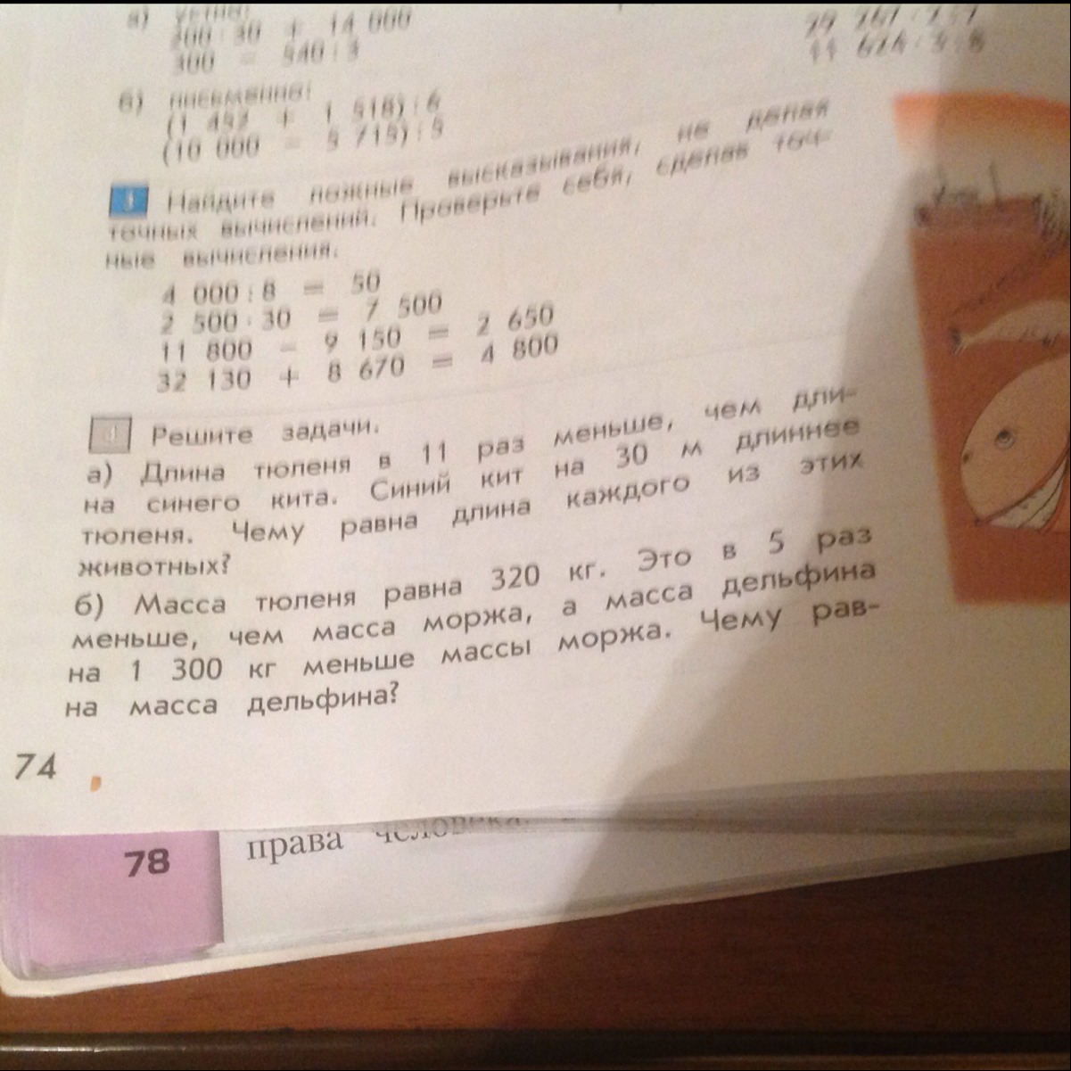 а)I способ:Предположим, что длина тюленя х метров, тогда длина синего кита 11х метров, также из условия задачи известно, что синий кит на 30 метров длиннее тюленя, а именно (х+30)согласно этим данным составим и решим уравнение:11х=х+3011х-х=3010х=30х=30:10х=3 (м) - длина тюленя.11х=11·3=33 (м) или х+30=3+30=33 (м) - длина синего кита.II способ:1) 11-1=10 (частей) - разница в длине.2) 30:10=3 (м) - длина тюленя.3) 30+3=33 (м) - длина синего кита.Ответ: 3 метра длина тюленя; 33 метра длина синего кита.