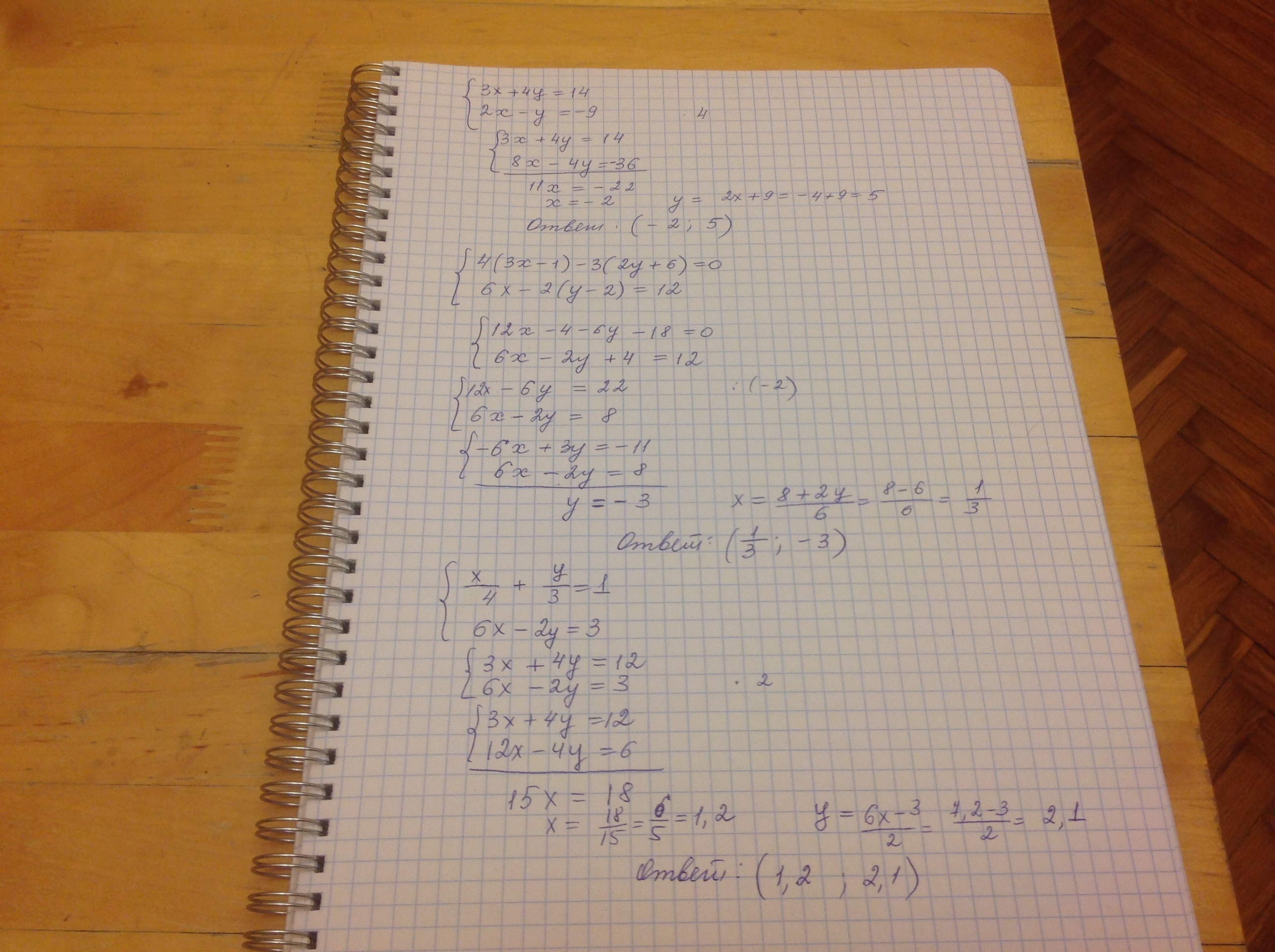 1){3x+4y=14, 2){4(3x-1)-3(2y+6)=0, 3){x/4+y/3=1