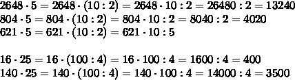 Задача: Верными равенствами можно пользоваться при вычислениях.Выполни умножение используя приёмы умножения на 5 и на 25.