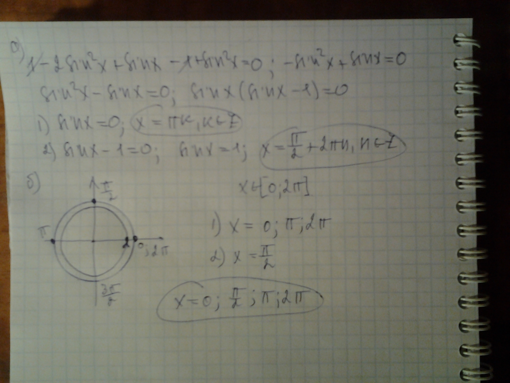 Применены : формула двойного угла косинуса, табличные значения синуса, отбор корней на тригонометрической окружности