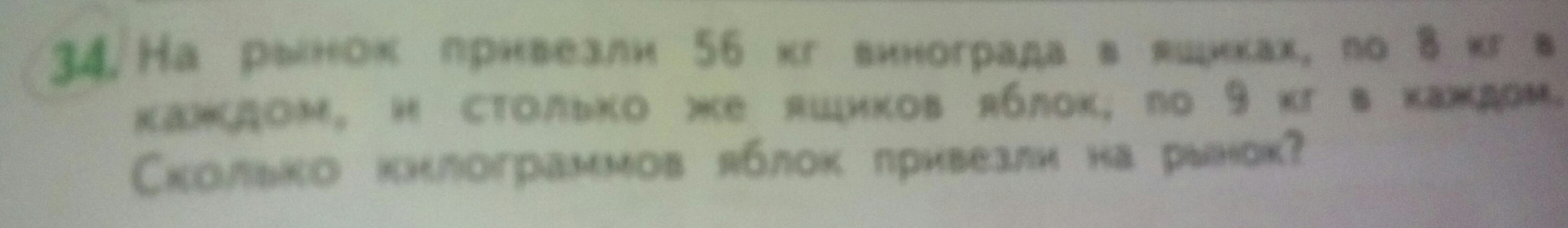ну было 56 кг по 8 кг в каждом значит было 56 : 8 = 7 (ящ.)