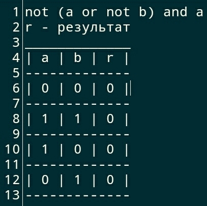 помогите пожайлуста составить таблицу истинности по информатике not (a or not b) and a (Срочно )