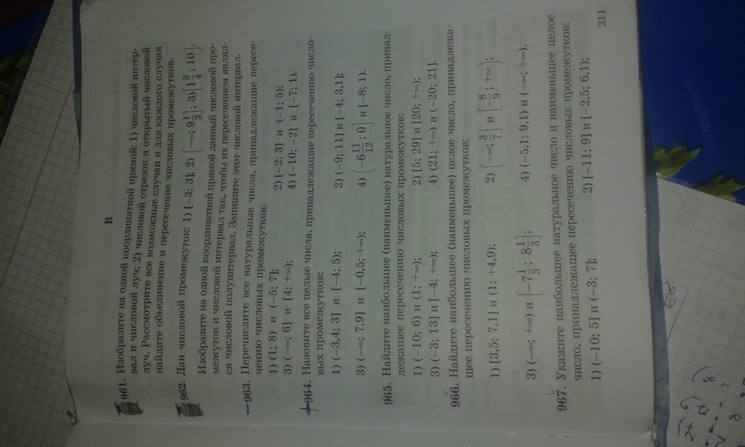 964.1)-3;-2;-1;0;1;2;3 2)-4;-3;-2;-1;0;1;2;3 3)0;1;2;3;4;5;6;7 4)-6;-5;-4;-3;-2;-1;0 965. 1)наименьшее 2,наибольшее 6 2)наименьшее 20.наибольшее 29 3)наименьшее 1,наибольшее13 4)не знаю- 21 входит в один промежуток,а во второй не входит.как будет правильно-не знаю. 966.1)наименьшее 2,наибольшее 7