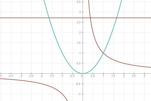 Вычислите площадь фигуры, ограниченной линиями: y=x^2, y=x^(-1), y=e. Ну или хотя бы какой то интеграл получится и первообразная? Спасибо!