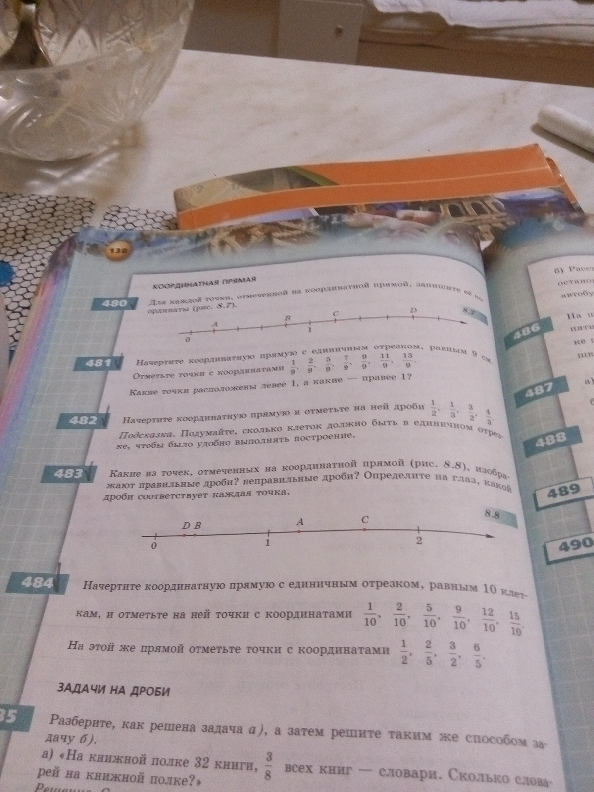 Начертите координатную прямую с единичным отрезком равным 9 сантиметров отметьте точки с координатами 491 номер