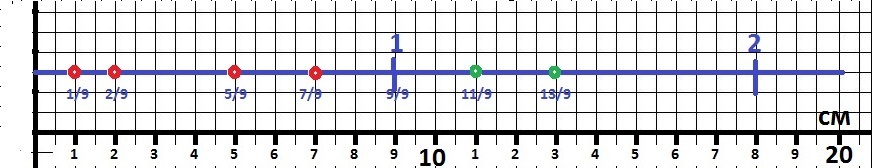 1/9 ед. - 2 клетки.