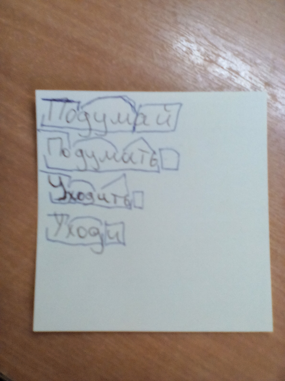 по-приставка дум-корень ай окончяние;по-приставка дум-корень ать-окончяние;у-преставка ход-корень ить-окончяние;у-преставка ход-корень и-окончяние